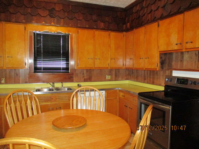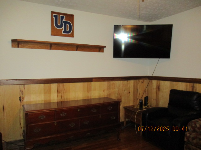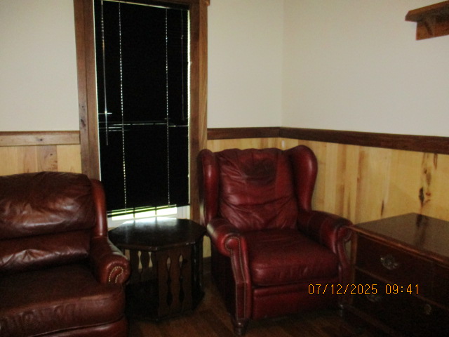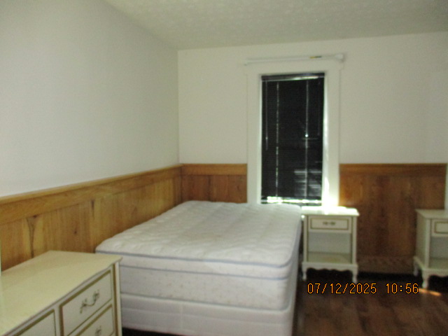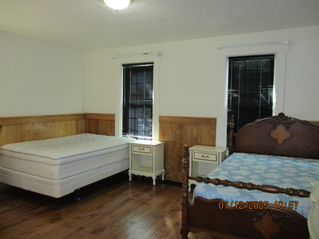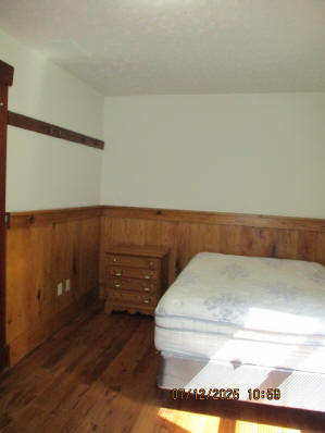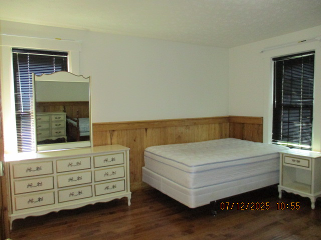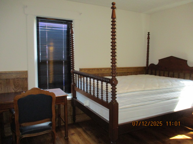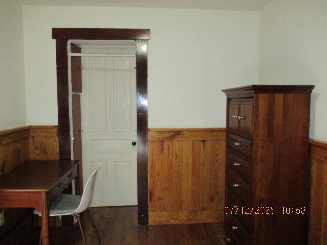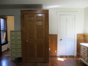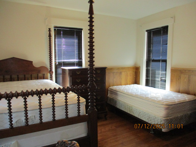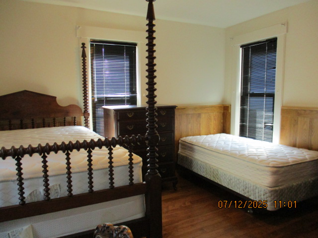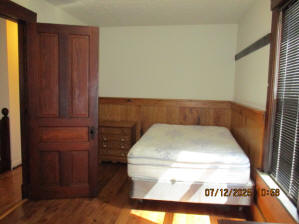 currently with full bed, and twin bed, oak wainscoting, Desk, Dressers, Closet