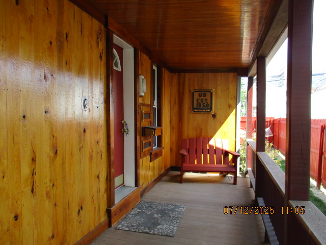 porch with oak ceilingand oak walls with black walnut trim, custom