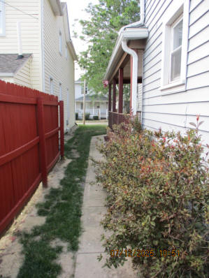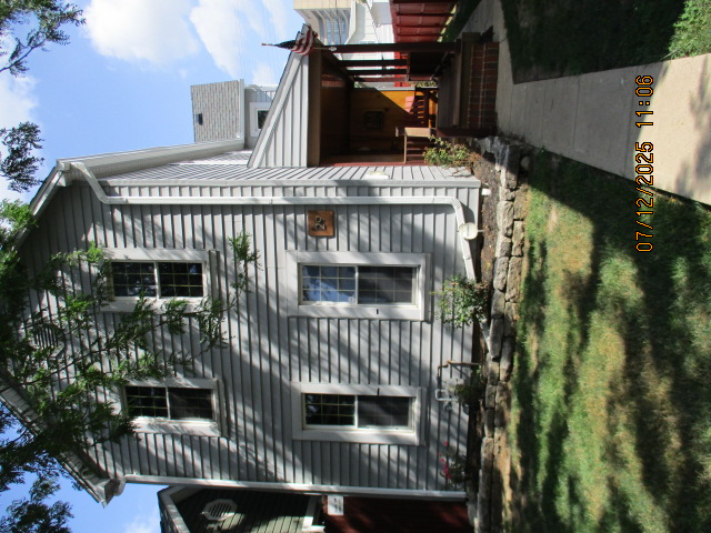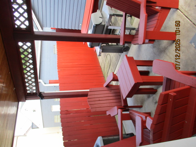 adirondack chair, stone flowerbed, side by side with our home at 25