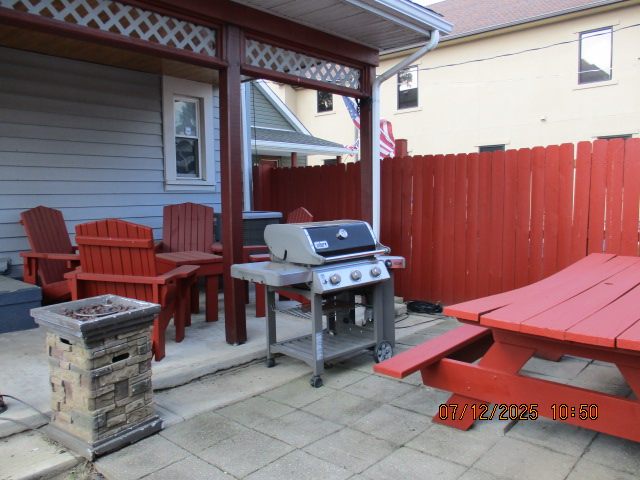 and Back Porch with Oak Ceiling, gas grill, concrete pavers pad with