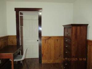 currently with two Full Beds, oak wainscoting, Desks, Dressers, and custom built oak closet with cedar