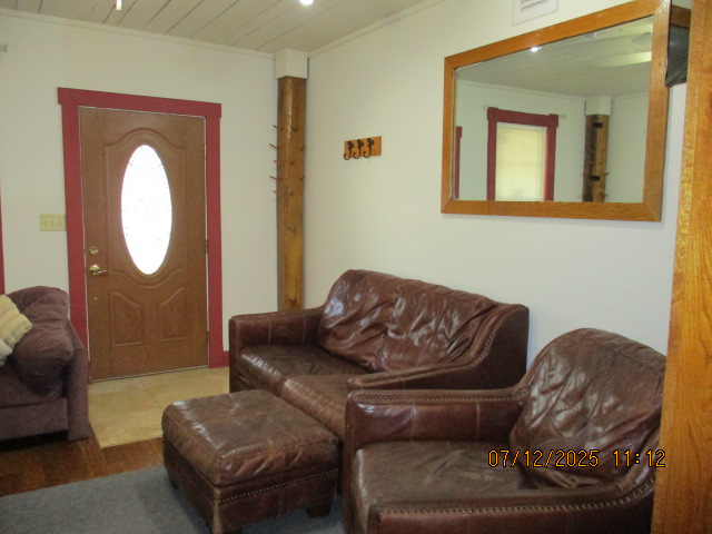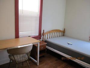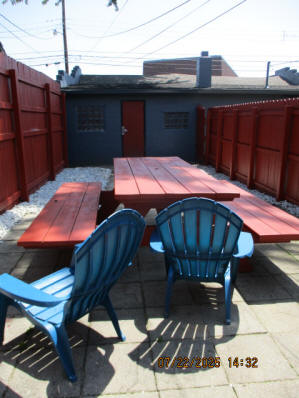 40 Jasper Street Old school hickory wood flooring in living room and upstairs bedrooms; tile flooring in kitchen and bathrooms; kitchen with butcher block countertops and farmhouse sink; kitchen also includes custom built oak kitchen table with blue coral granite top, cherry kitchen cabinets; two bathrooms with Italian marble tile walls, commercial bathtubs, and tile flooring; brick front porch; custom built coffee table; wall mounted television in living room; back patio area with picnic table, gas grill and gas fire pit. This property has the following features: 3 bedrooms, 2 bathrooms with Italian marble tile walls, central air conditioning, premium leather living room set, beautiful wood ceiling with track lighting in living room, washer and dryer, privacy fenced in backyard with back patio area. Best of all, you are half a block from campus and all the fine restaurants!! **As with all our properties, maintenance is included.* (Click on any of the pictures below to see an enlarged views) Front views with brick front porch with new custom oak wall with black walnut accents, custom built adirondack chair, and planter box. Right next to our home at 38 Jasper (tan siding) Living Room with premium sectional sofa, leather love seat, old school hickory wood flooring, wall mounted television, ceiling fan, and wood ceiling with track lighting.