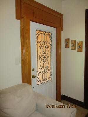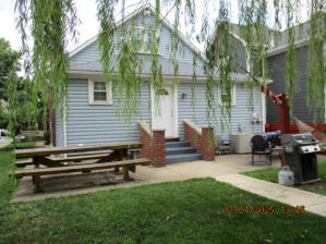 Backyard with security lighting and off street parking with lighting. Privacy fence in backyard, hammock, picnic table, gas grill, and custom bench in fence, next door and open backyard with our home at 42 Frank This page last updated 08/05/25 |