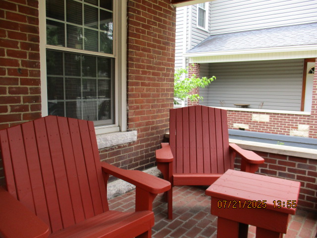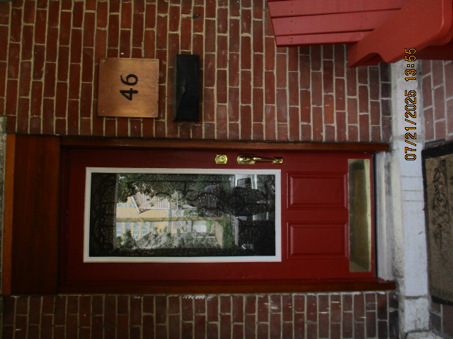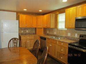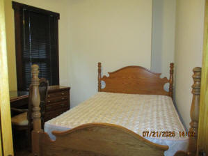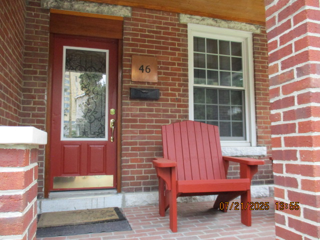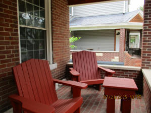 46 Frank Street This gorgeous brick home features: solid oak wood flooring downstairs in living areas and bedrooms, two downstairs bedrooms both with cedar lined closets, one upstairs bedroom with oak wainscoting, cedar lined closet and two other closets! Kitchen with hickory cabinets, oak wainscoting, slate tile flooring, dishwasher, microwave and platinum series commercial grade washer and dryer. Bathroom features Italian marble tile and vanity with two sinks. Central heat and air conditioning, steel entry doors. Front entrance door is trimmed in black walnut. This house also has a living room and a parlor with a beautiful fireplace with a tiger oak mantle, leather living room furniture, and wall mounted television. Privacy fence in backyard, picnic bench, gas grill and hammock. Best of all, you are a block and a half from campus and all the fine restaurants!! **As with all our properties, maintenance is included.** (Click on any of the pictures below to see an enlarged view)** Front views of house with front porch with oak ceiling and stone retaining wall Parlor with solid oak wood flooring, fireplace with tiger oak mantle, ceiling fan, sectional sofa, wall mounted television