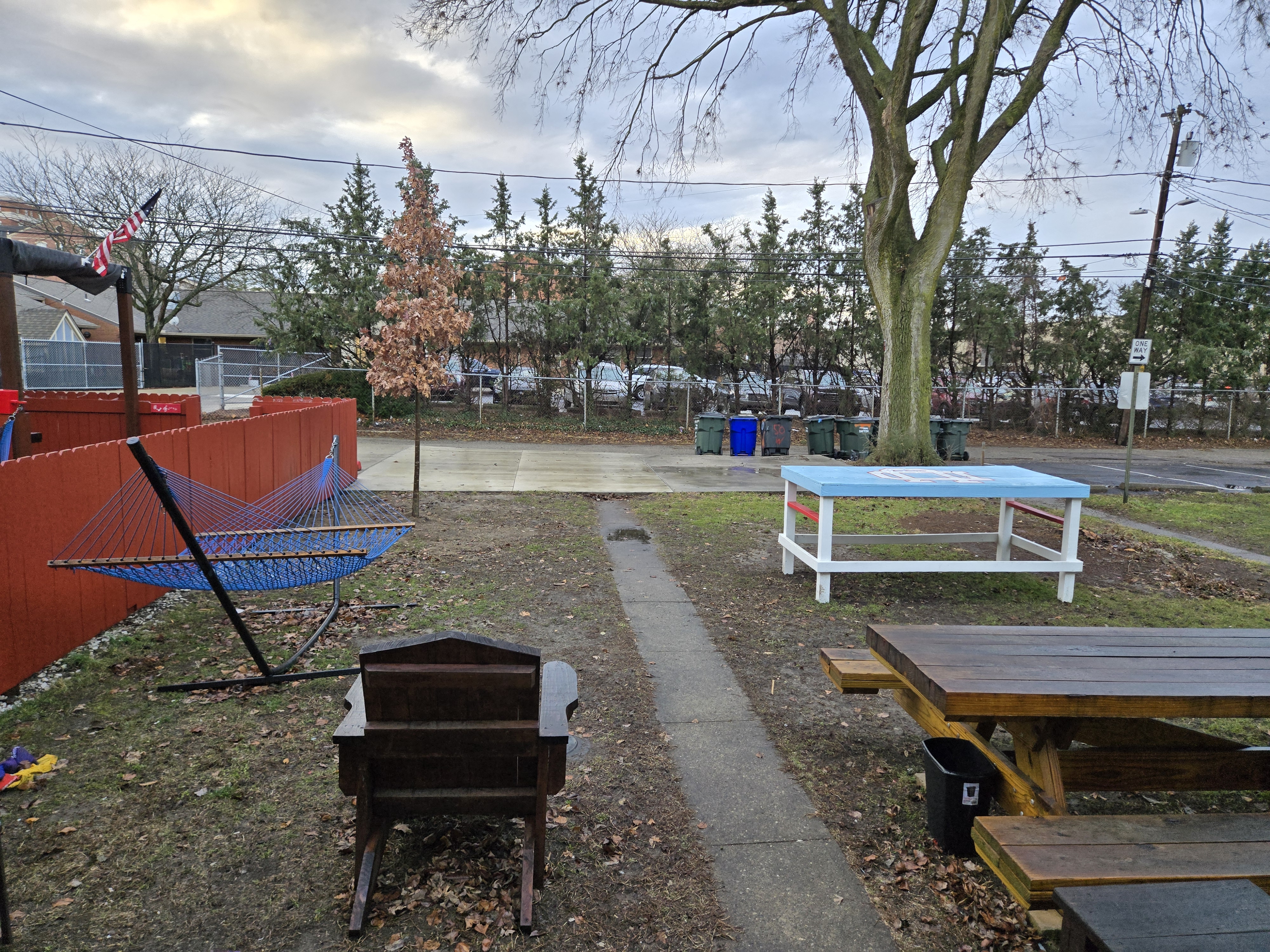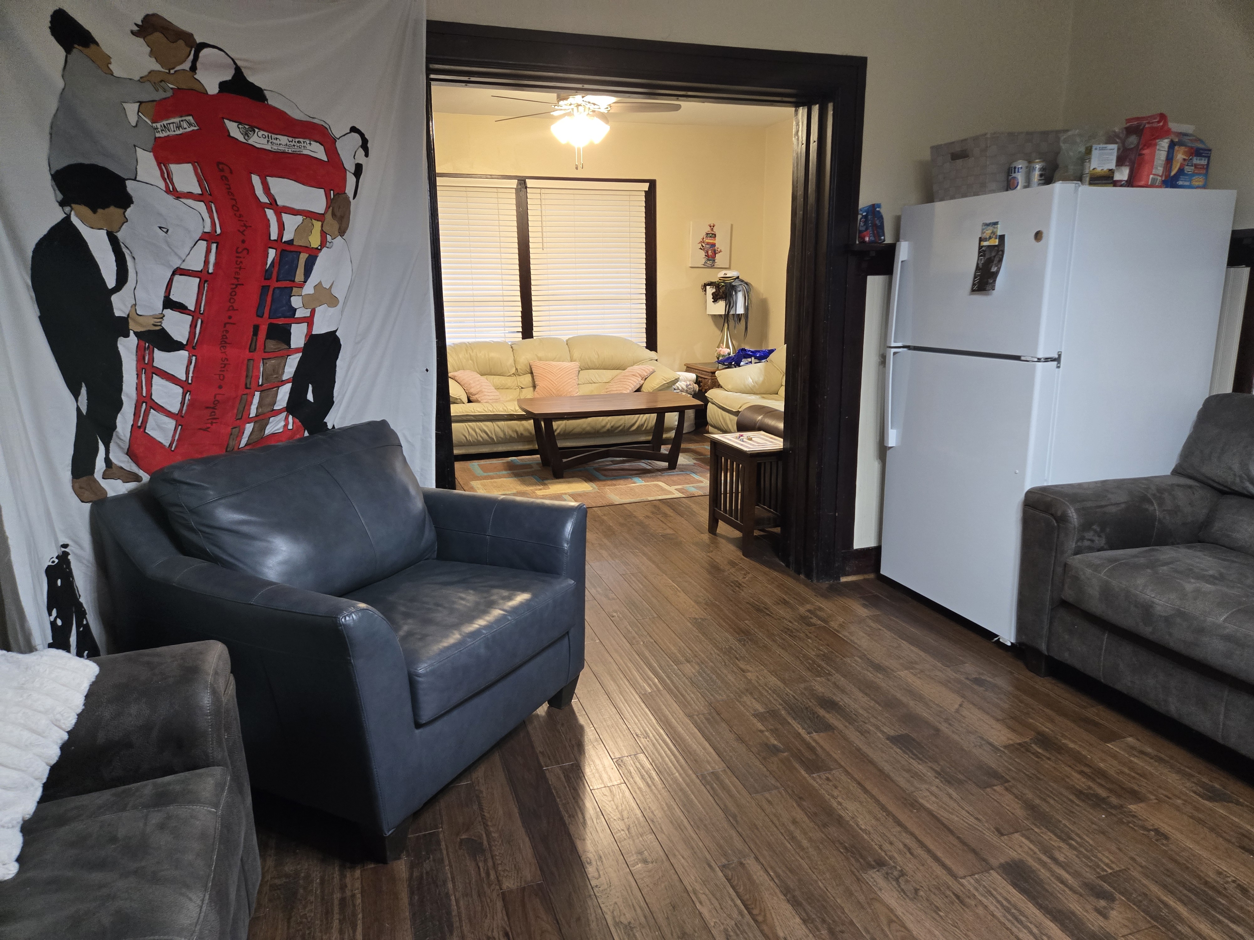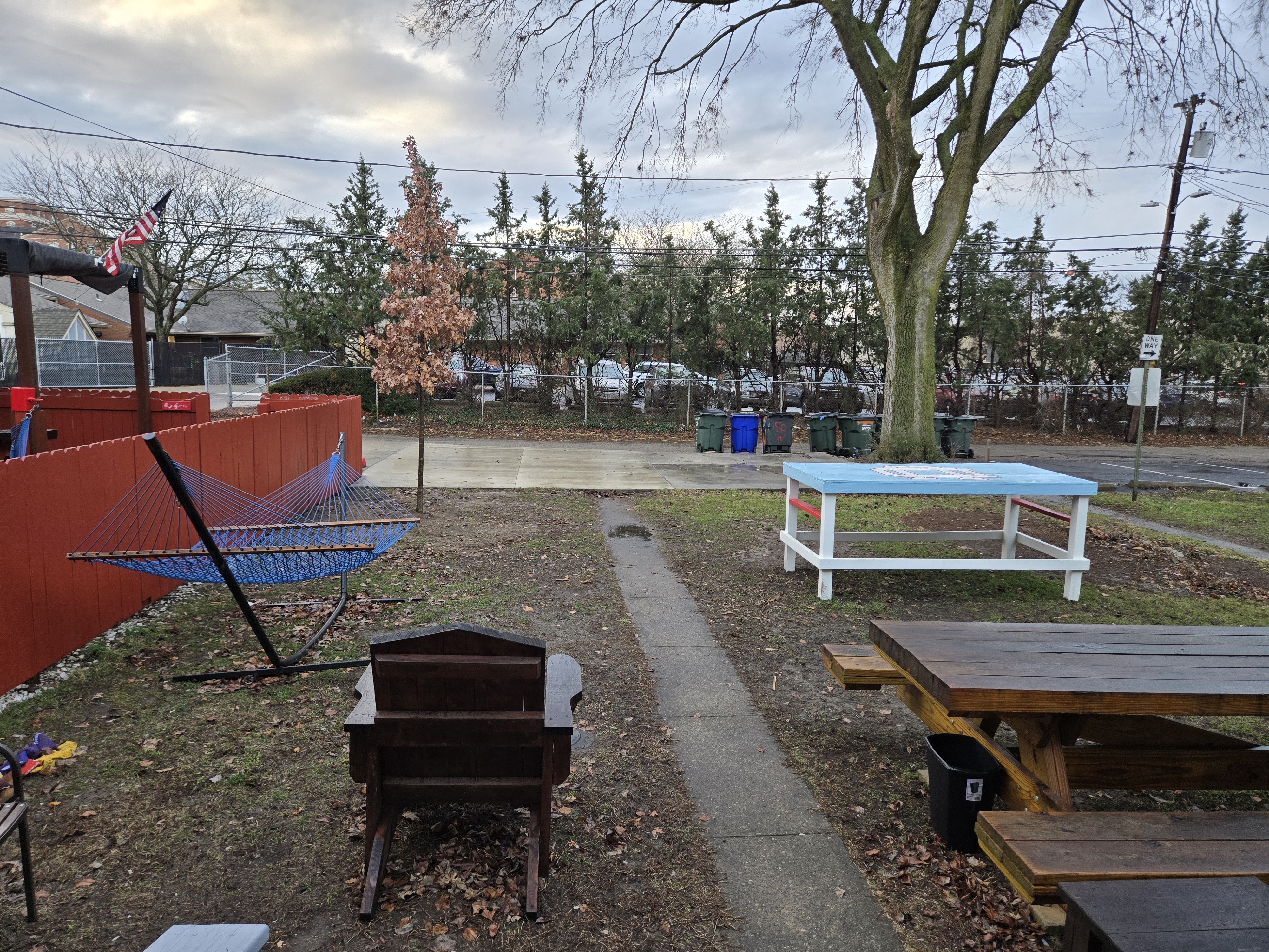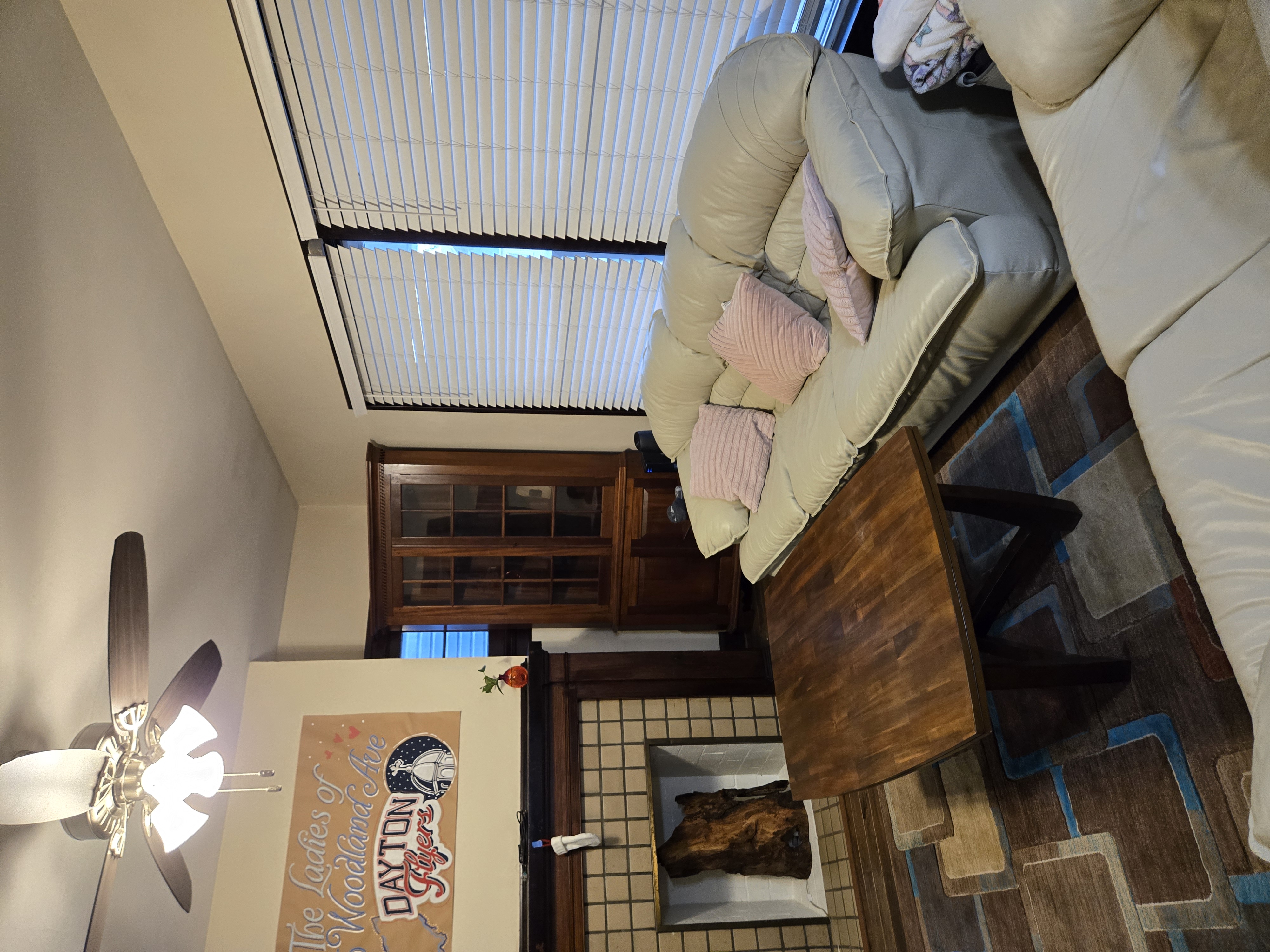 46 Woodland Avenue - right next door to our Tiki house at 48 and 50 Woodland Avenue This property has the following features: 3 large bedrooms, licensed to six students, one and half bathrooms, upstairs laundry, large living room and dining room, beautiful original wood front entry door and wood staircase, central heat and air conditioning, will be fully furnished, will have a nice new concrete pad in backyard, picnic table, new grill, hammock, beatiful stones in backyard this summer. Best of all, you are half a block from campus and all the fine restaurants!! As with all our properties, maintenance is included. (Click on any of the below pictures to see an enlarged view) New updated pictures at the beginning of each room section. Recent updates over winter break: new toilets, new dishwasher, new hardwood hickory flooring installed down stairs, new stair treads for upstairs staircases and basement staircase, new picnic table, hammock, adirondack chair added in backyard, new lighting in kitchen, living and dining rooms; large multi room basement cleaned out, painted and dry locked, new glass block windows and furniture, a great space to hang out in! More front and current back yard views (back yard to have poured concrete pad in backyard, new grill, hammock, picnic table, large stones added this summer Good size living room with faux fireplace, beautiful wood staircase and original wood front entry door Good size kitchen with dishwasher, microwave, built in storage cabinet, new lighting, new dishwasher Storage room off of kitchen by back entrance, cleaned out and painted Downstairs half bathroom off of kitchen, repainted and new toilet LLLarge dining room, new hardwood hickory flooring new lighting Large living room with faux fireplace, beautiful original wood front entry door, beautiful wood staircase, new hardwood hickory flooring, new stair treads, new cabinet, custom UD sign, new lighting Newly cleaned out basement with plenty of space to gather, with new glass block windows, tabe and chairs, stair treads Current backyard, with hammock, picnic table, and adirondack chair, parking pad, (to be updated spring 2026 with poured concrete backyard space) Large upstairs bathroom with big shower, shelving unit, new toilet, new glass showe doors Upstairs laundry Triple bedroom with three closet spaces Double bedroom with two closet spaces Single bedroom, good size closet space Unfinished attic bonus space This page last updated 1/23/2026