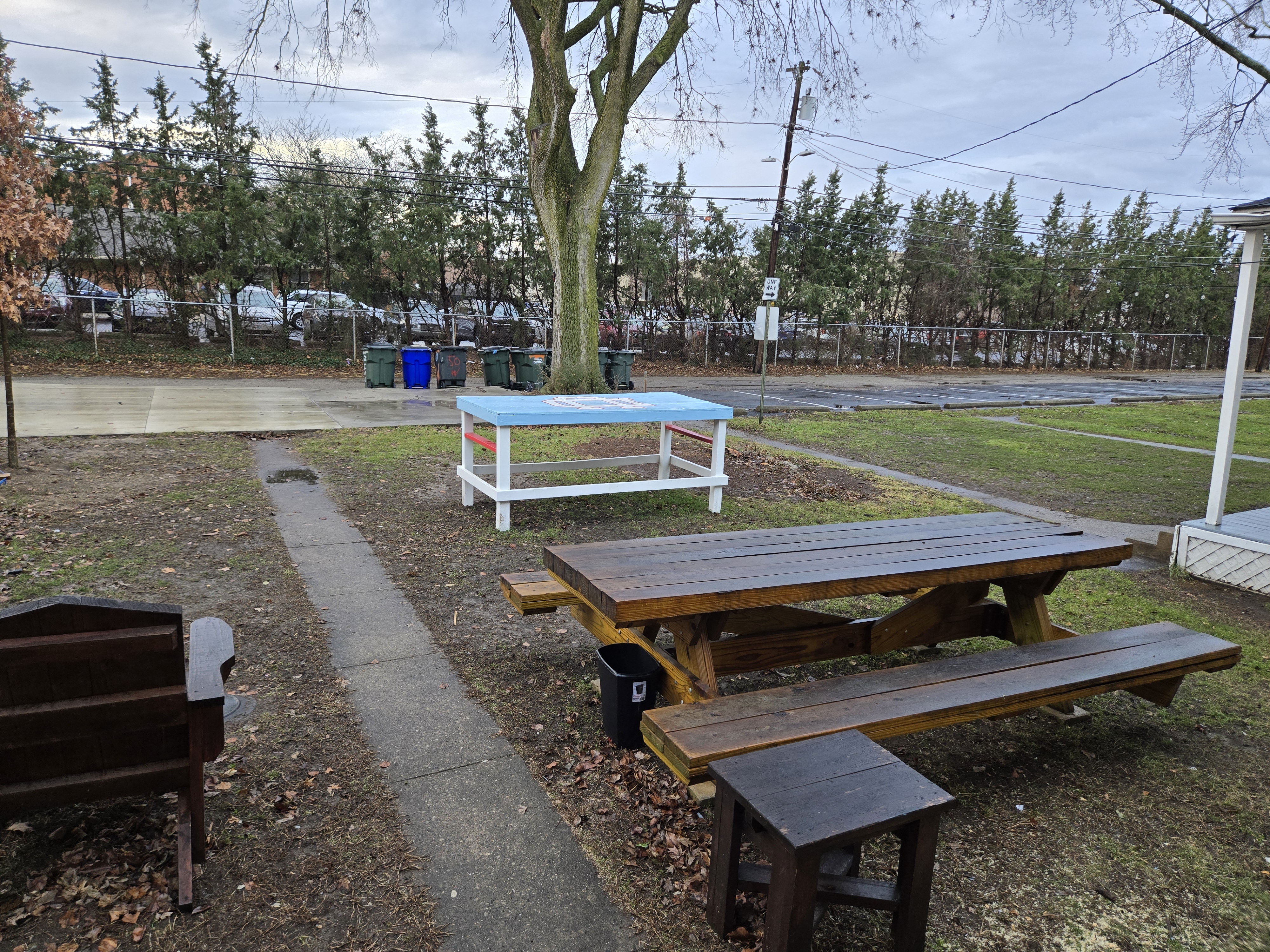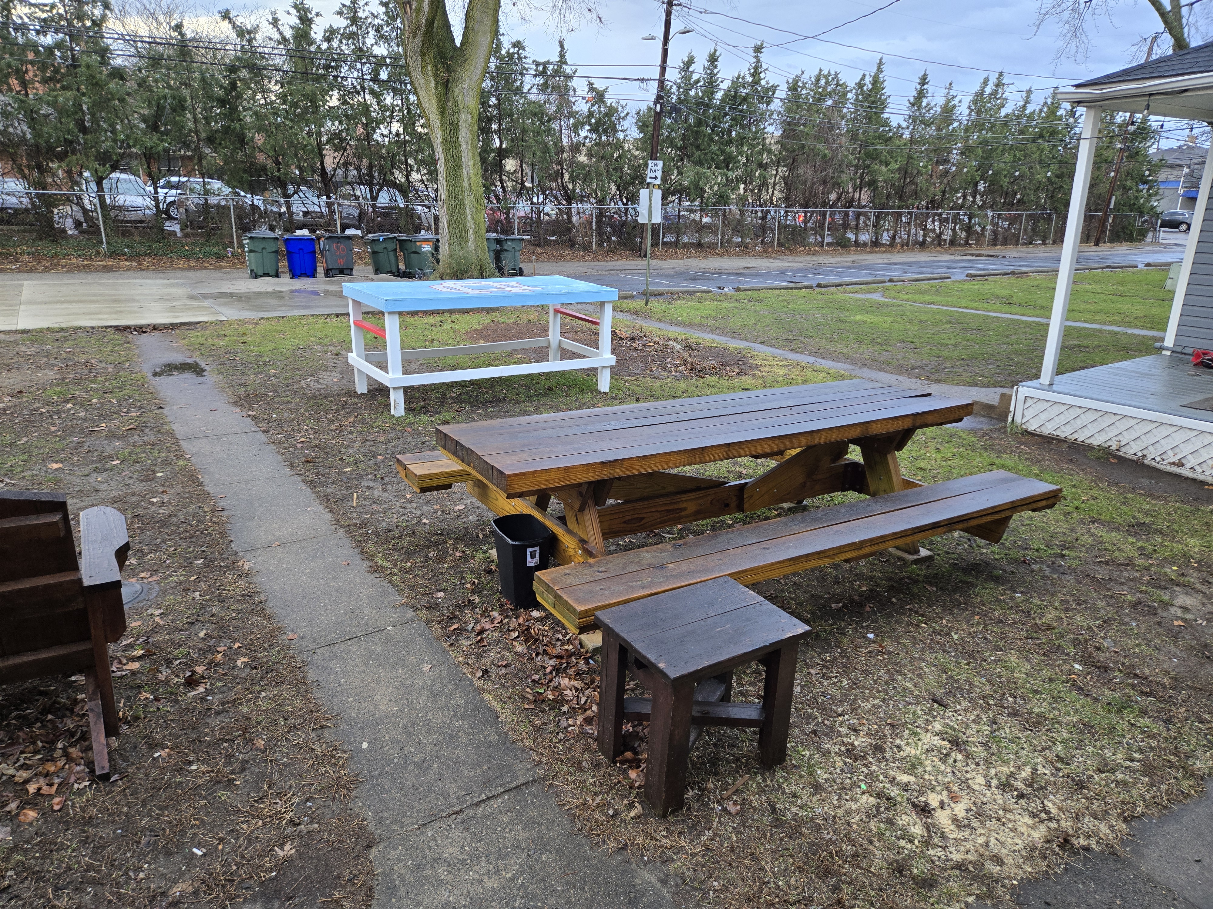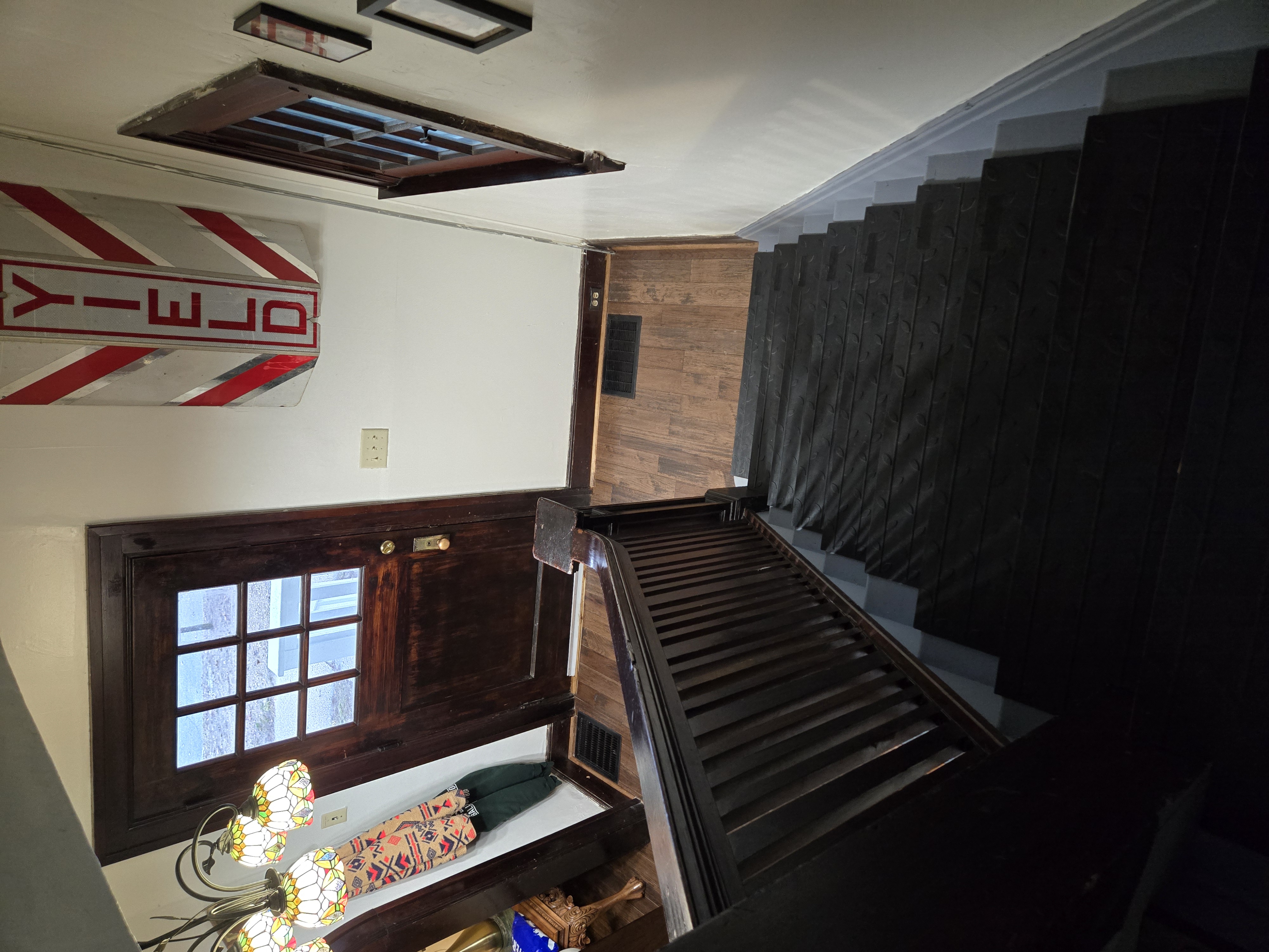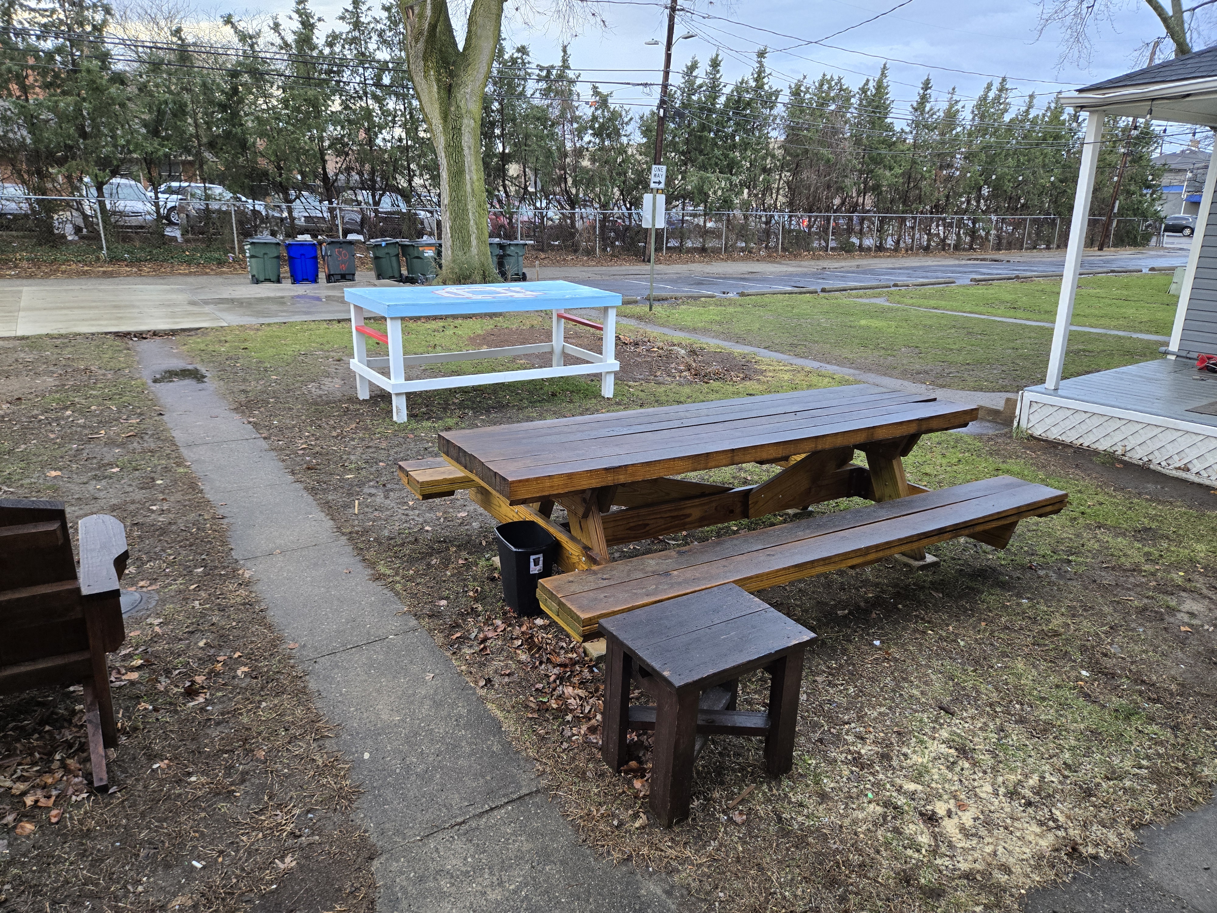 46 Woodland Avenue - right next door to our Tiki house at 48 and 50 Woodland Avenue This property has the following features: 3 large bedrooms, licensed to six students, one and half bathrooms, upstairs laundry, large living room and dining room, beautiful original wood front entry door and wood staircase, central heat and air conditioning, will be fully furnished, will have a nice new concrete pad in backyard, picnic table, new grill, hammock, beatiful stones in backyard this summer. Best of all, you are half a block from campus and all the fine restaurants!! As with all our properties, maintenance is included. (Click on any of the below pictures to see an enlarged view) New updated pictures at the beginning of each room section. Recent updates over winter break: new toilets, new dishwasher, new hardwood hickory flooring installed down stairs, new stair treads for upstairs staircases and basement staircase, new picnic table, hammock, adirondack chair added in backyard, new lighting in kitchen, living and dining rooms; large multi room basement cleaned out, painted and dry locked, new glass block windows and furniture, a great space to hang out in! More front and current back yard views (back yard to have poured concrete pad in backyard, new grill, hammock, picnic table, large stones added this summer Good size living room with faux fireplace, beautiful wood staircase and original wood front entry door Good size kitchen with dishwasher, microwave, built in storage cabinet, new lighting, new dishwasher Storage room off of kitchen by back entrance, cleaned out and painted Downstairs half bathroom off of kitchen, repainted and new toilet LLLarge dining room, new hardwood hickory flooring new lighting Large living room with faux fireplace, beautiful original wood front entry door, beautiful wood staircase, new hardwood hickory flooring, new stair treads, new cabinet, custom UD sign, new lighting Newly cleaned out basement with plenty of space to gather, with new glass block windows, tabe and chairs, stair treads Current backyard, with hammock, picnic table, and adirondack chair, parking pad, (to be updated spring 2026 with poured concrete backyard space) Large upstairs bathroom with big shower, shelving unit, new toilet, new glass showe doors Upstairs laundry Triple bedroom with three closet spaces Double bedroom with two closet spaces Single bedroom, good size closet space Unfinished attic bonus space This page last updated 1/23/2026