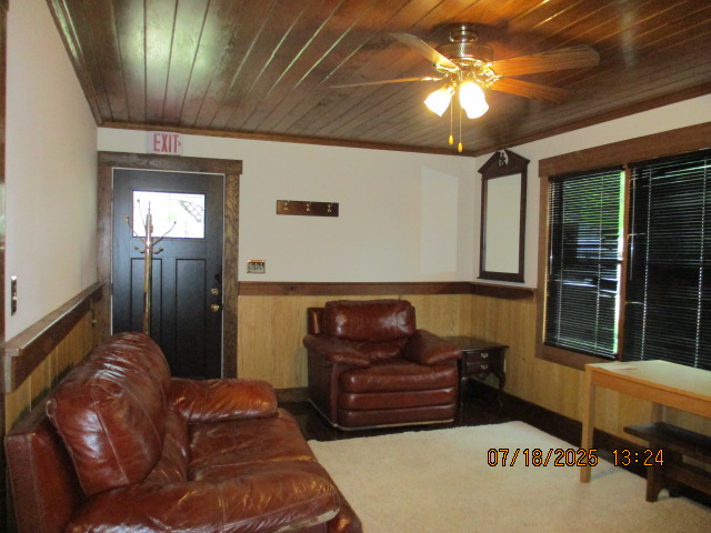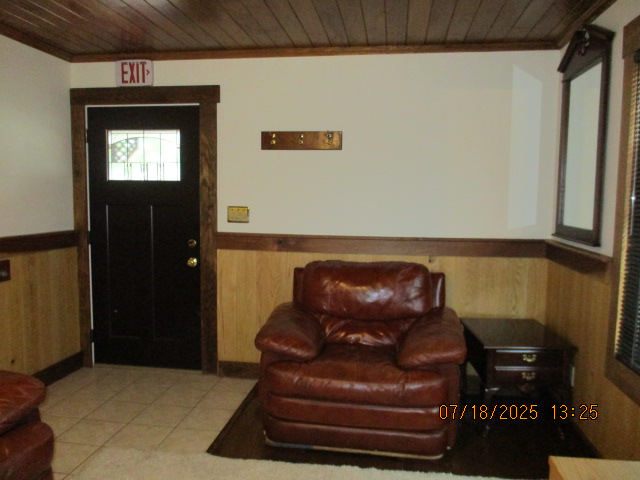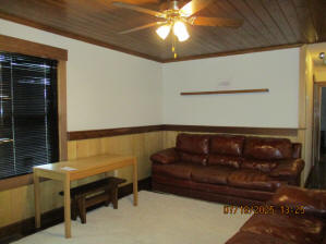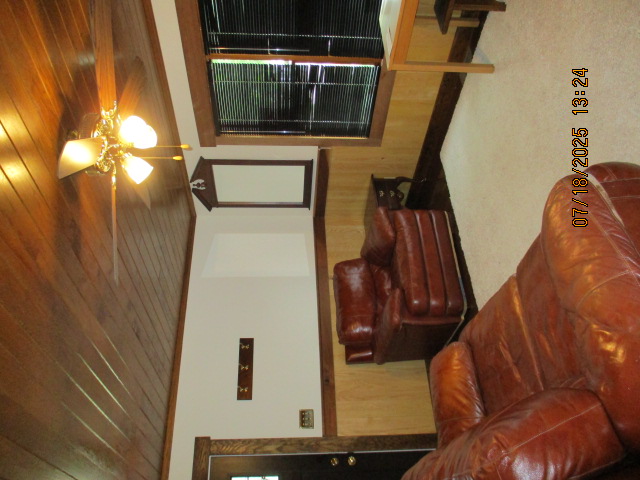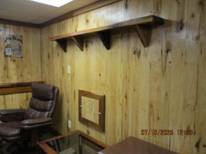 Absolutely beautiful Basement Recreation Room with solid hickory walls with black walnut accents, with gas Fireplace , beautiful large leather sectional sofa, leather furniture, table and chairs, bedroom area with full wood bed, security camera monitoring system, dresser, desks currently in main basement area, large cedar lined closet in main basement area. This page was last updated 07/29/25 |