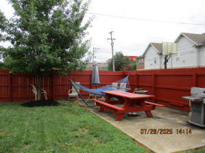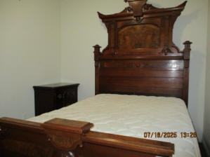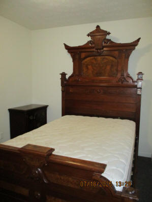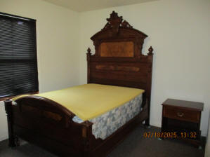 Privacy Fenced in Backyard with Basketball Court Outside Fence with Parking Pad, side yard, Picnic Table in Backyard, propane fire pit, hammock in stand, gas grill, security lighting Living Room with solid oak wood flooring, Premium Leather Living Room Set, oak wainscoting with black walnut trim, hallway leading to bedrooms, hallway closet First main floor Bedroom currently with beautiful Victorian style Full Bed, Desk, Nightstand, and cedar lined Closet