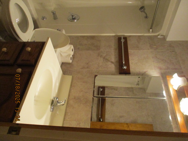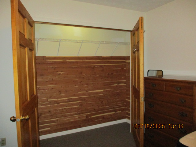 Second (middle) main floor Bedroom currently with wood full bed, Desk, Dresser, cedar lined Closet, mirror, and Nightstand Bathroom with marble tile walls with Bathtub/Shower and Linen closet outside bathroom Third Upstairs Bedroom with Large cedar lined Closet, currently with two wood twin beds, cherry high boy dresser